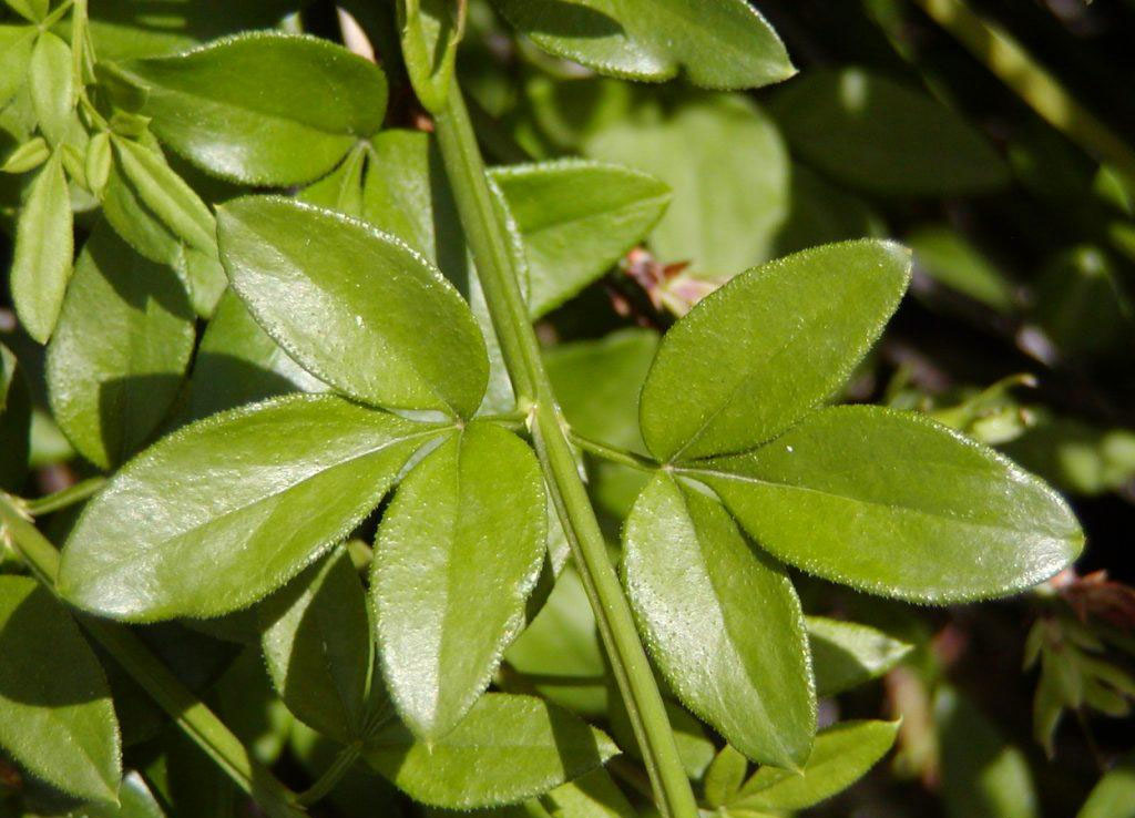 | Leaf | Opposite, composed of three leaflets borne on a common stalk about 1⁄4 in. long. Leaflets are oval-oblong, 1⁄2 to 1 in. long, one-third to half as wide, tapered at both ends, deep lustrous green, not toothed, but furnished at the margin when young with tiny hairs |