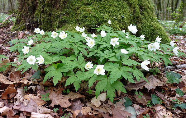 Leaves of the wood anemone are simple but are so deeply divided that they have the appearance of a palmate leaf. The leaf is occasionally termed as trifoliate. Leaves have a distinctive smell, often described as musky – which may account for one of the wood anemone’s alternative names “smell fox”. There is a whorl of leaves just below the flower, whilst others arise from ground level on long stalks.