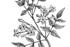 | Flower | Terminal corymbose cymes; pedicels 5-15 mm long. Bracts linear, minute. Calyx tube c. 3 mm long, teeth very short. Corolla yellow, tube 1-2.5 cm long, lobes 5, broadly ovate-obtuse or round, reflexed when the flower is open. |