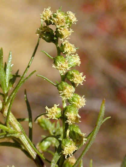 Zoysia grass is stoloniferous rhizomous forming low mats which is 3 to 5 cm high when crowded to 10 to 20 cm. Stolons are wiry which is 1 to 1.5 mm diameter, internodes are 1.5 to 3 cm. Sheaths of branch leaves are glabrous and internodes. Leaf blades are linear, long to attenuate measuring (1.5-) 2-3 (-6) cm x ca 1 mm which are finely furrowed and glabrous. An inflorescence is a narrow, cylindric and spike like raceme which are about 1 to 2.5 cm long.