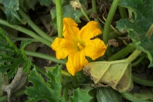 Zucchini is an annual vine that has shallow, branched and well developed taproots. The leaves are alternate, simple, large, broadly triangular and dark green. The fruit of Zucchini is white, pale-dark green-yellow having a variable shapes and 1 meter long. The fruit bears flattened seeds of obovoid- elliptic shape and white to pale brown in color. The stem is hard, angular, five-angled, semi-erect and pubescent to scabrous. The plant bears bright yellow flowers that are pentamerous and solitary.
